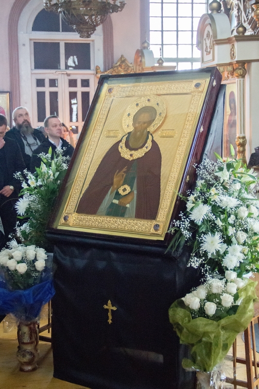 Икона преподобного Сергия, игумена Радонежского приносится во многие епархии Русской Православной Церкви в нынешнем году по благословению Святейшего патриарха Московского и всея Руси Кирилла в ознаменование 700-летия со дня рождения великого светильника нашего Отечества, которого с любовью называют игуменом земли Русской. Эта икона с частицей святых мощей преподобного была создана в Свято-Троицкой Сергиевой Лавре. В пределах Воронежской митрополии она будет находиться до 25 апреля. Более подробно с графиком пребывания иконы в городах Воронежской области можно познакомиться на нашем сайте в разделе "Анонсы". А в Великий Вторник перед началом богослужения, святыню торжественно принесли в главный храм Борисоглебской епархии, где она пробудет до утра 17 апреля. И каждый верующий сможет принести перед образом преподобного Сергия свои молитвы и прошения с верой в небесную помощь и его покровительство.