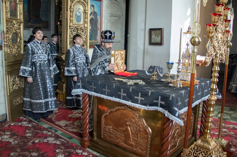 В Великий Вторник митрополит Воронежский и Лискинский Сергий возглавил торжественную встречу чтимого образа преподобного Сергия с частицей его святых мощей и совершил в Знаменском храме г. Борисоглебск, куда святыню доставили из Саратовской митрополии, Божественную литургию Преждеосвященных Даров