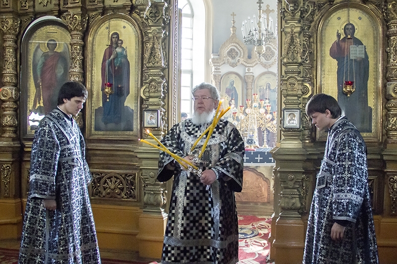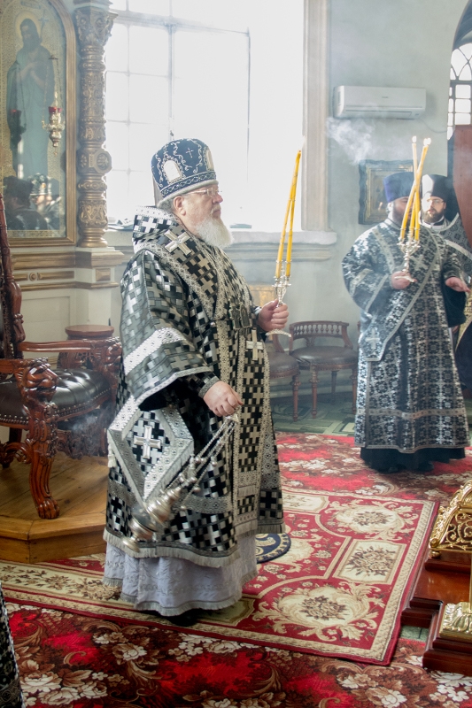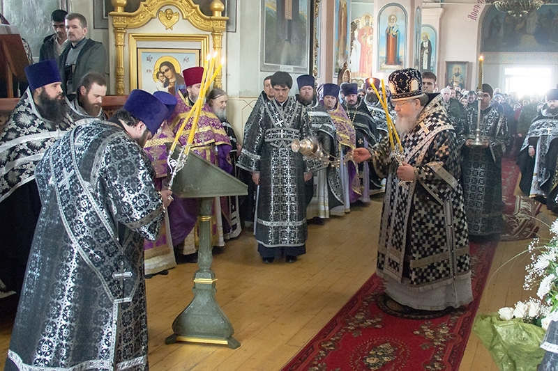 Его Высокопреосвященству сослужили исполняющий обязанности секретаря Борисоглебского епархиального управления архимандрит Кирилл (Костиков) и духовенство Борисоглебской епархии.